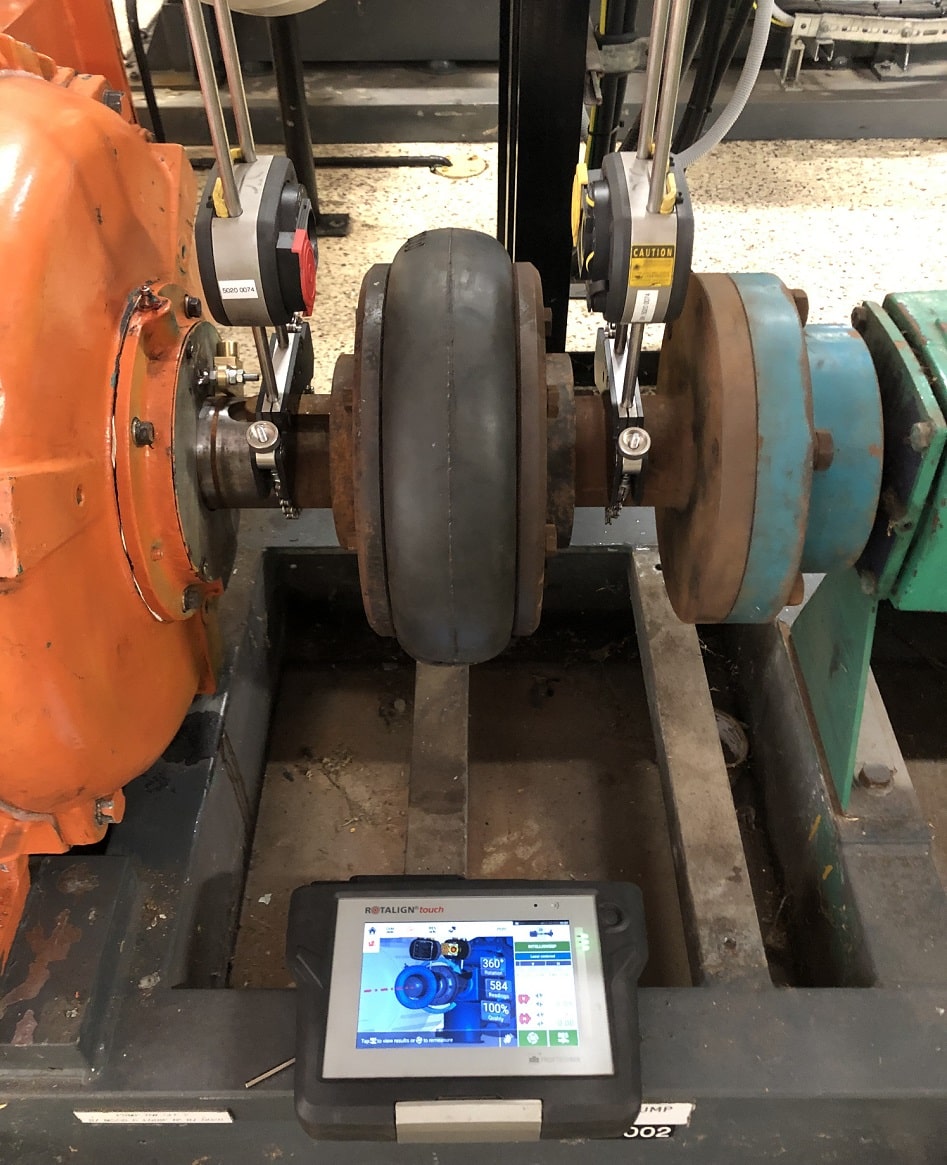 使用pruftechnik.Rotalign Touch.和实时移动功能我们能够在5个旋转中完成最近的对齐。这项工作在一个小时内完成,导致该过程的严重破坏。