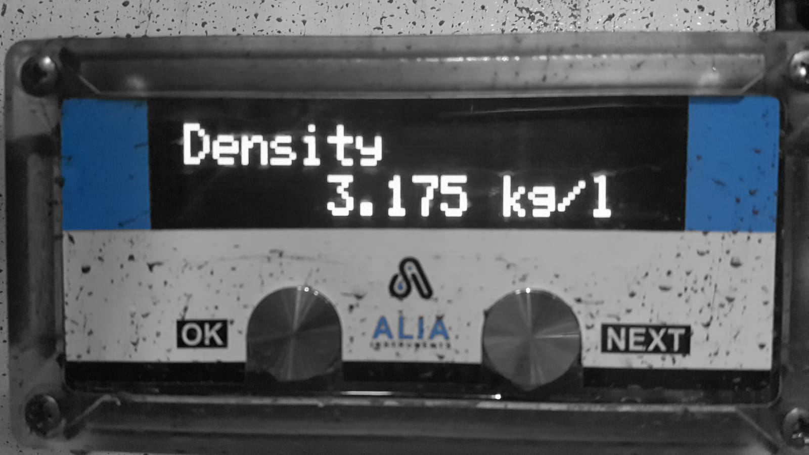 ALIA的密度计定位在泥浆管道中。密度,定义为每体积单位的泥浆质量,是在动态条件下测量的。